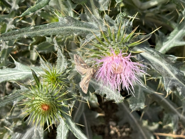 There were beautiful butterflies and moths, feasting on bright purple milk thistle along the way.