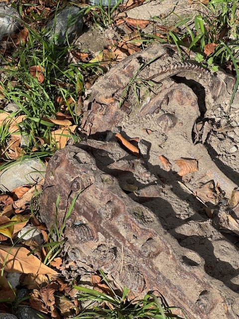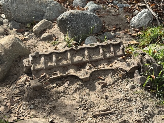 I noticed parts of a washed out car, which at one time was violently tossed about, before being buried here by the sometimes violent San Gabriel River.