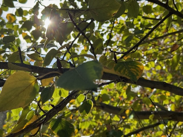 The last portion of the hike, through the forest, was much more brightly illuminated by the sunshine than before, in the early morning. The leaves of the greens backlit, in shades of gold and green greeted me along the last stretch of trail.