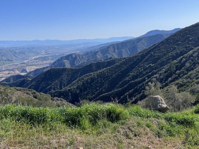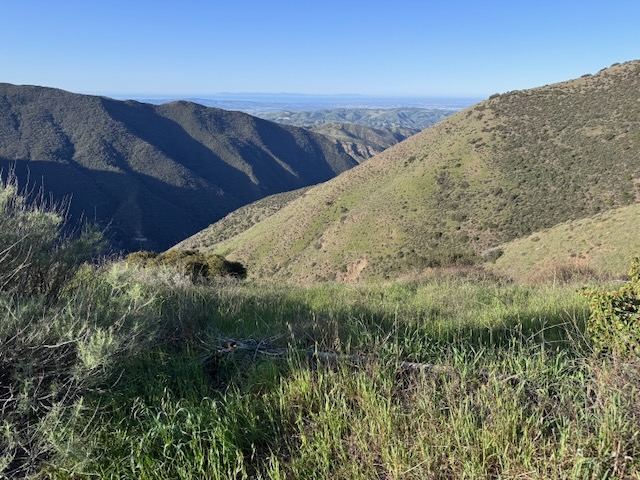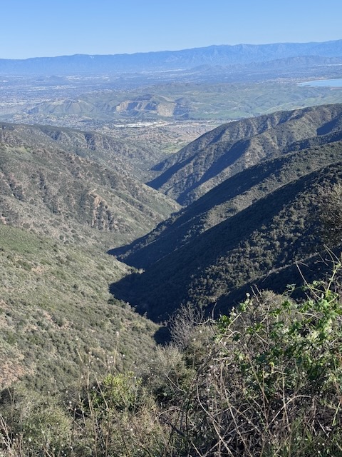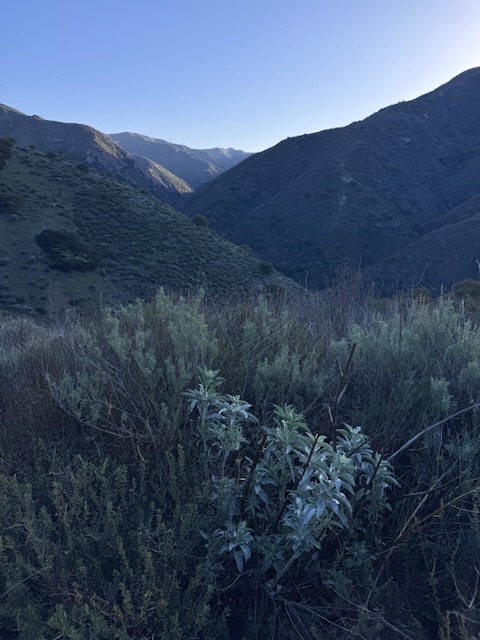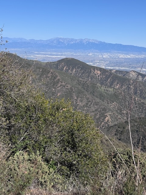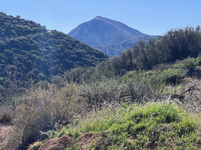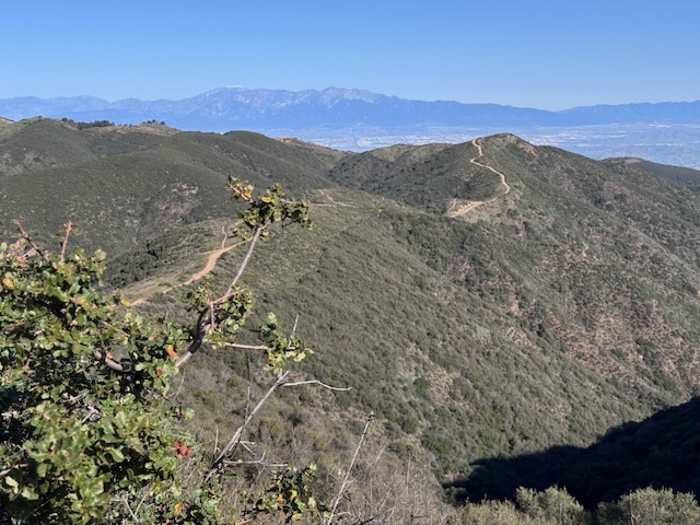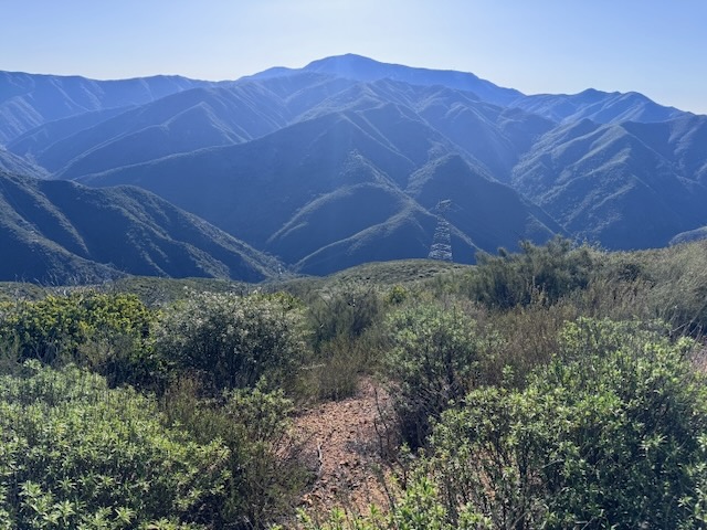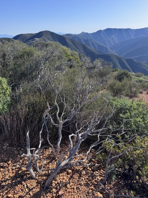 To the south, beyond the manzanita, was Santiago Peak in the distance, across a Silverado Canyon below.