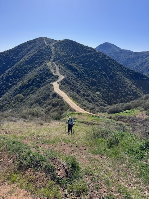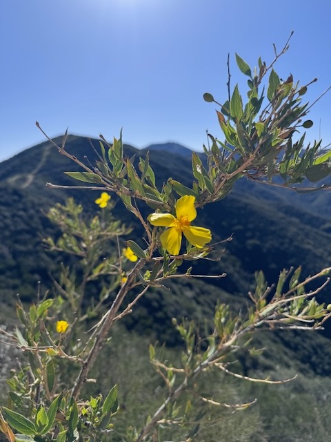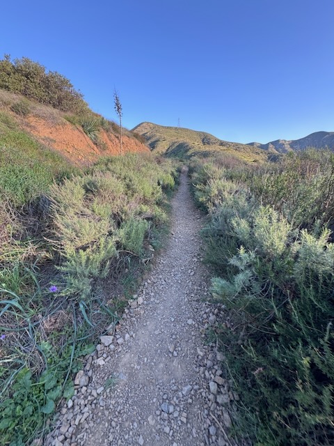 The first mile or so of trail are made up of two long switchbacks through a canyon, dotted in sycamore trees, scattered in early spring wildflowers, shrubs and vines.