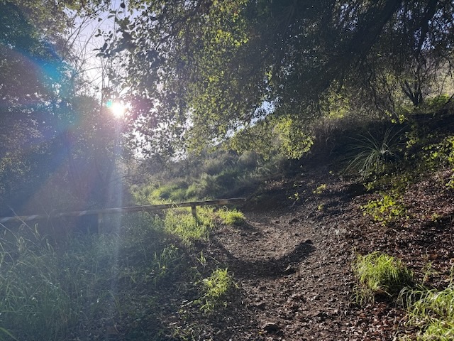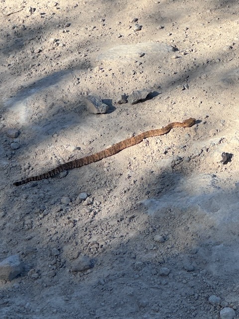 The trail ranges from narrow to wide, so it is best avoided during times of peak snake activity (Spring to Fall). Also the spring begins, when the grass emerges, and the first flowers bloom which can start as early as January, FYI. The snakes hang out in the shade, but sometimes in the sun, and are toughest to see mid-day when dark shadows are cast.