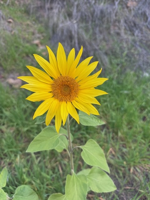 I was greeted by a bright yellow sunflower, likely sprouted from a stray sunflower seed. Birds drop seeds from feeders, and are the reason you may see non-natives sprouting along the trail.