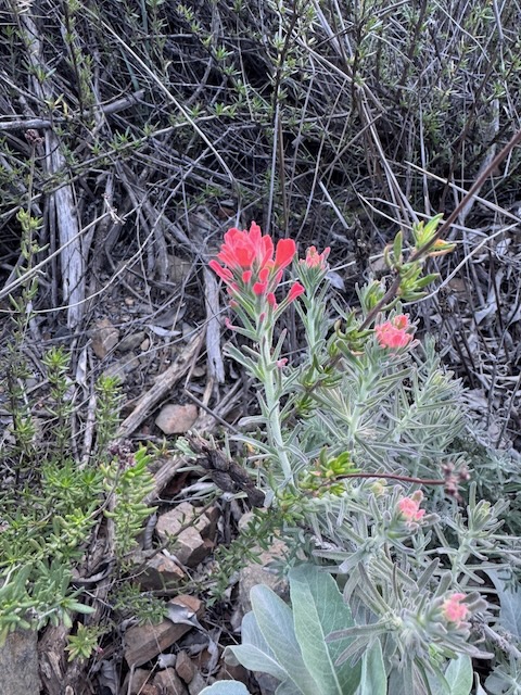 While hiking along, admiring many beautiful early spring wildflowers, it was around 1:25 as we were approaching Bedford Peak, and I noticed a baby rattlesnake, laying like a stick across the trail. It could not have been more than 1.5 feet long, and 1” wide.