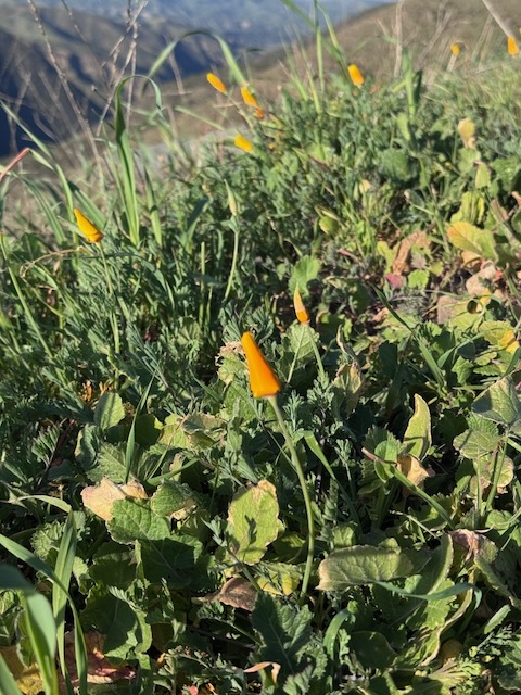 By 2:30 pm I was close to the trailhead, hiking along the poppy covered hillsides, above Silverado Canyon with about a mile to go.