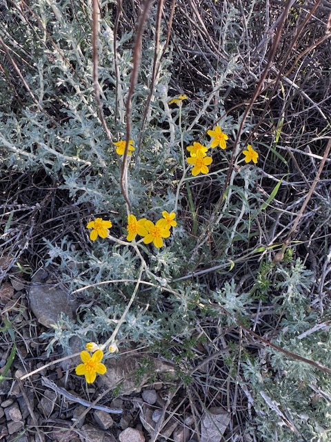 The bright yellow petals of Flannelbush were blowing in the breeze along the ridge to my right, beer bottles cast aside on the other, and snowy peaks hung in the distance for contrast.