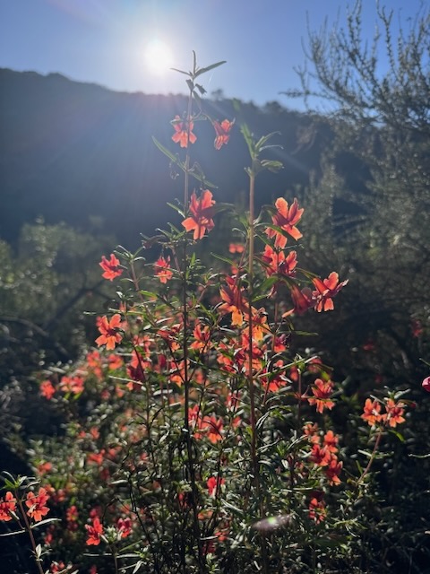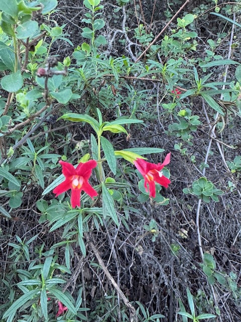 I was encouraged by abundant sunshine, and beautiful flowers, such as this Red Monkeyflower. I noticed multiple wildflowers in bloom, the kind whose petals don’t close at night, since they were all up bright and early.