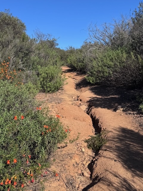 I arrived at the Bear Canyon Trailhead at 7am, located to the right of the candy store on Ortega Highway. Many of the trails in this area from Bear Canyon parking area have remained closed since the Airport Fire, including Hot Springs Canyon, Chiquito Falls, and the San Juan Loop. There is parking is alongside the road and I displayed my forest service pass.